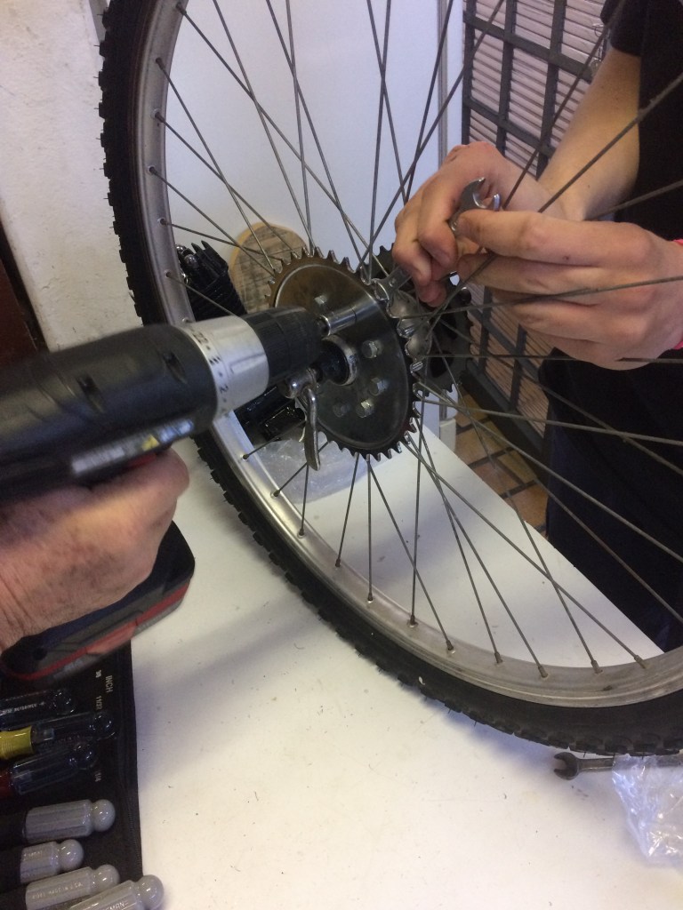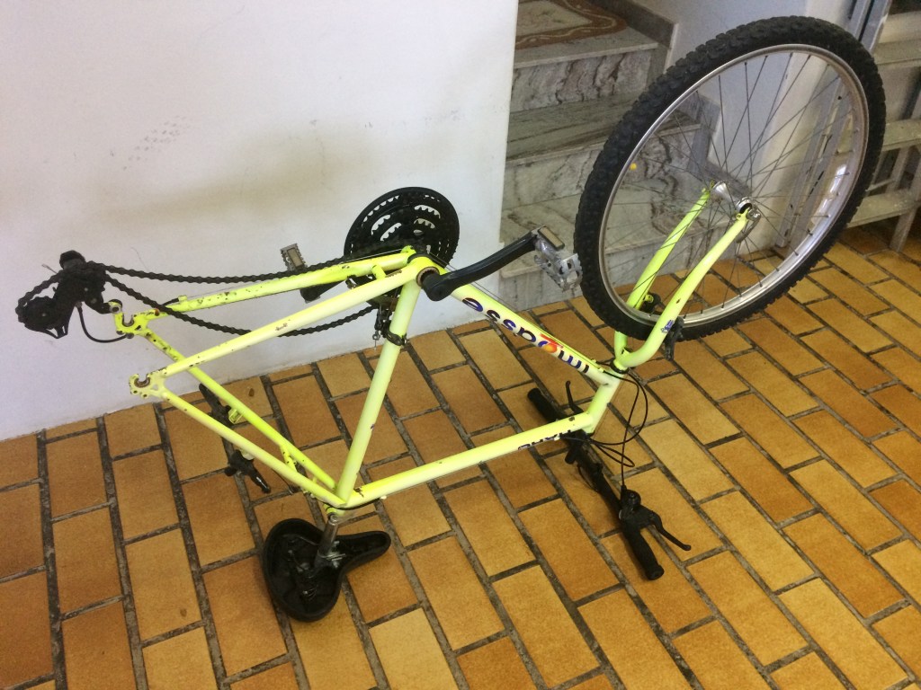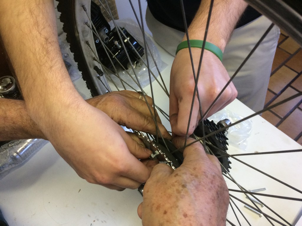 Veja no Youtube um conjunto de videos que mostram a sequencia da operação até a bicicleta ficar montada