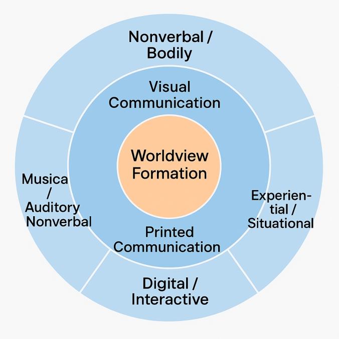 If you want, I could map these channels in a layered diagram, with the visual/printed/oral triad at the core and the other modes orbiting them — showing how they all feed into worldview creation. Would you like me to prepare that?