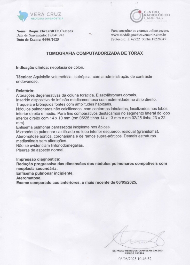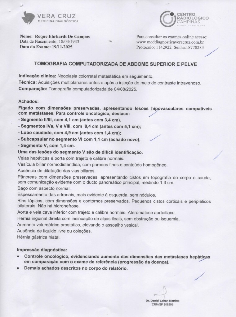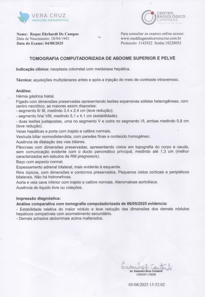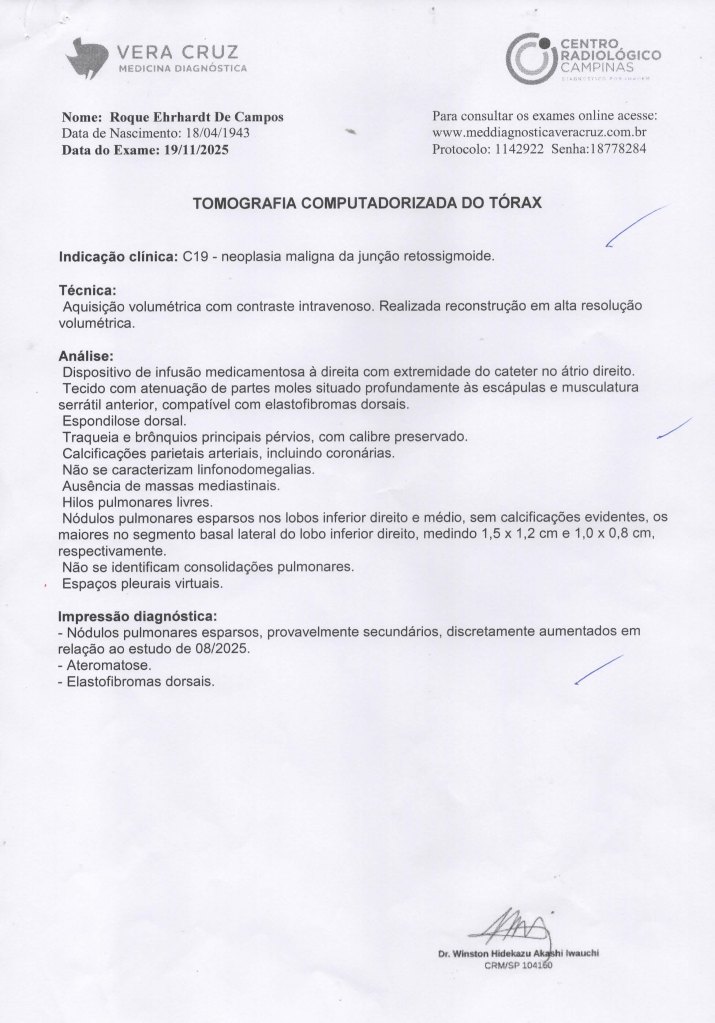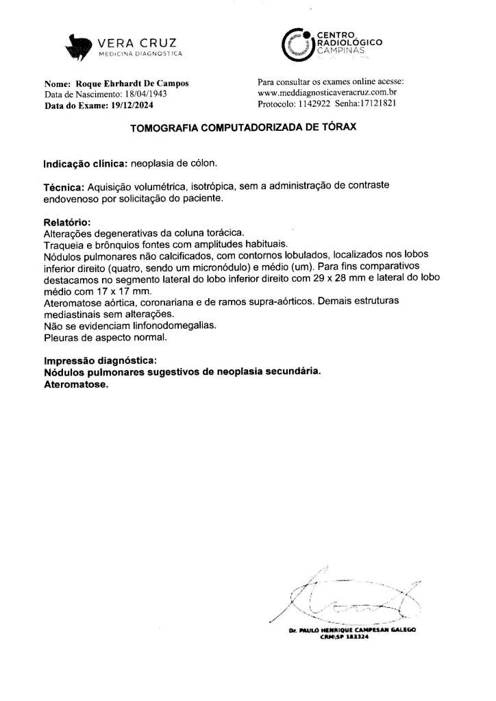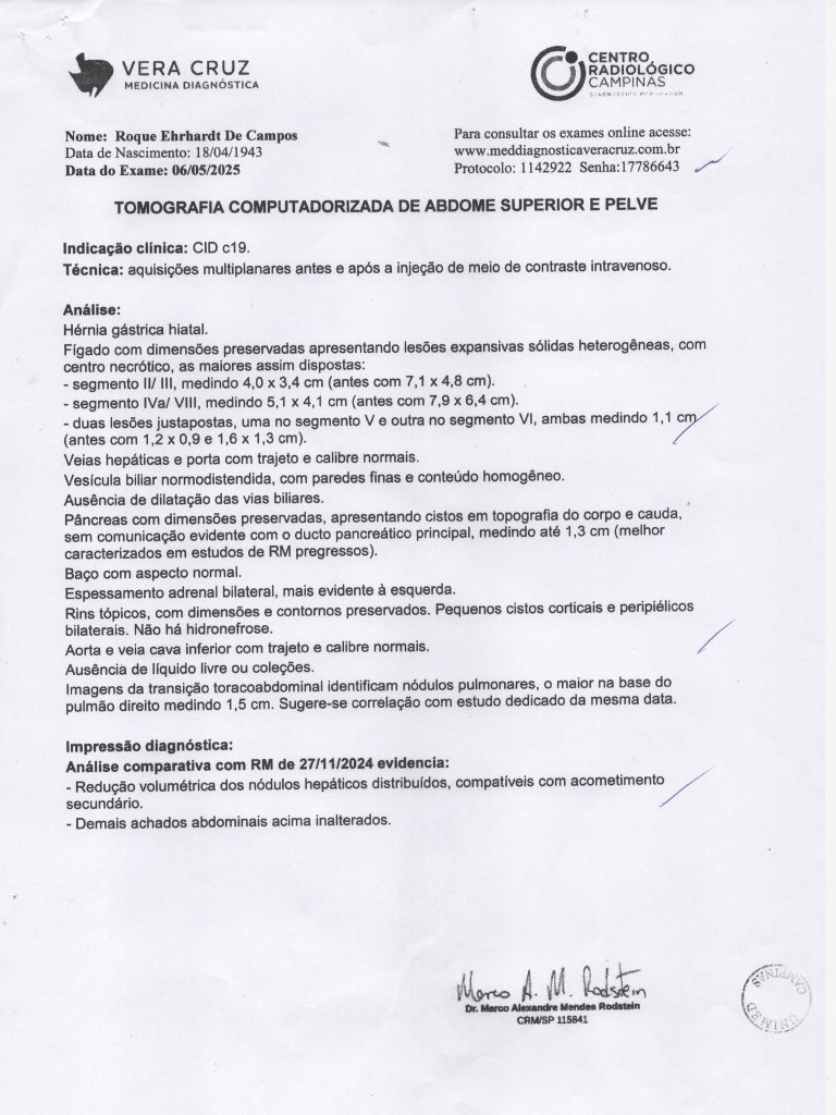 Diagnóstico inicial equivocado e não estou apresentando detalhes, foi posteriormente corrigido elo Dr. Ciquini e confirmado por TCM com contraste: