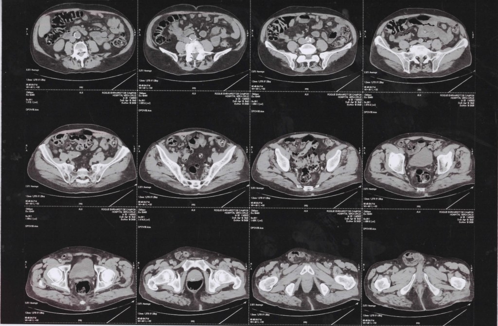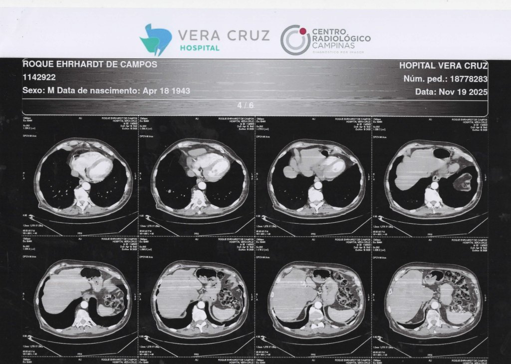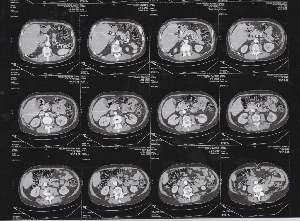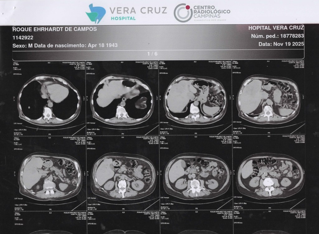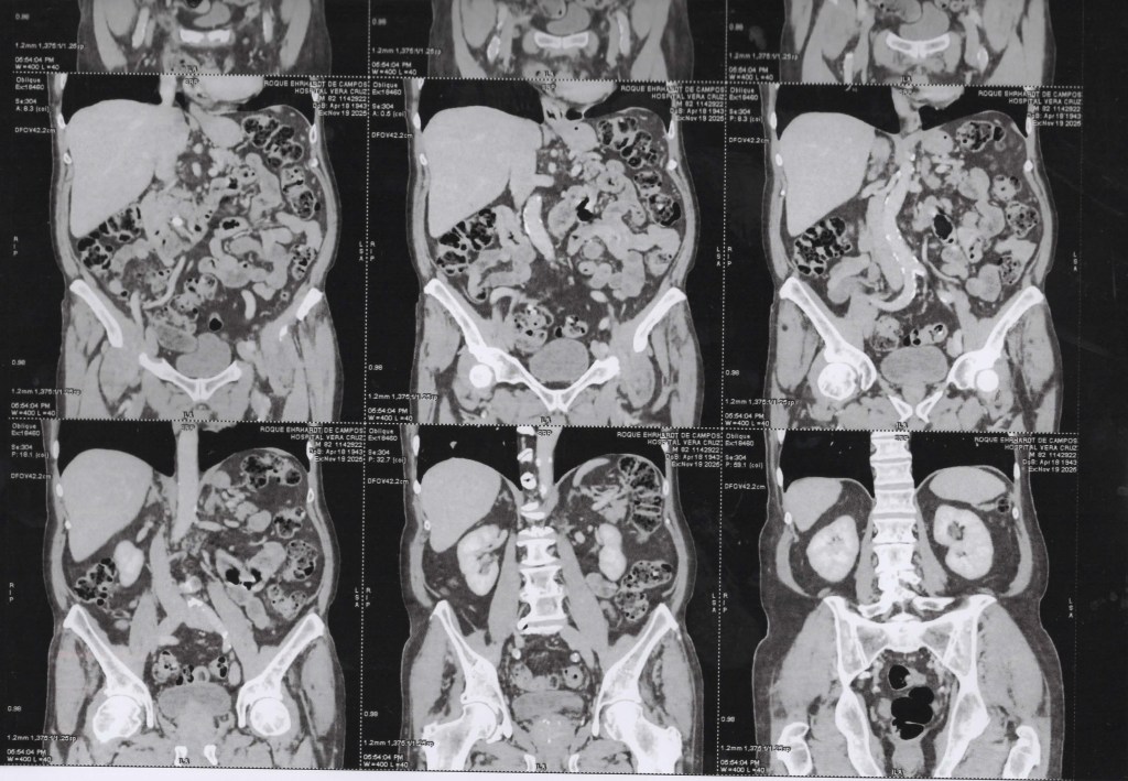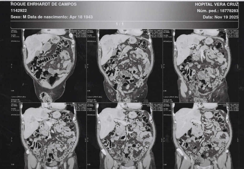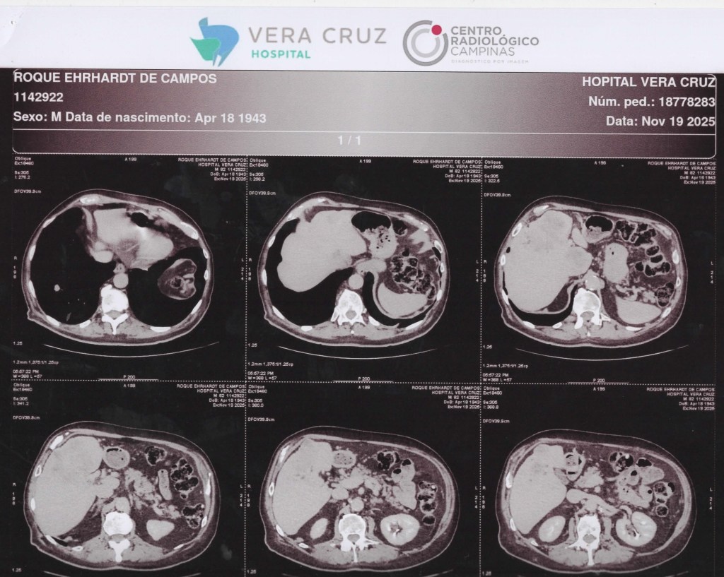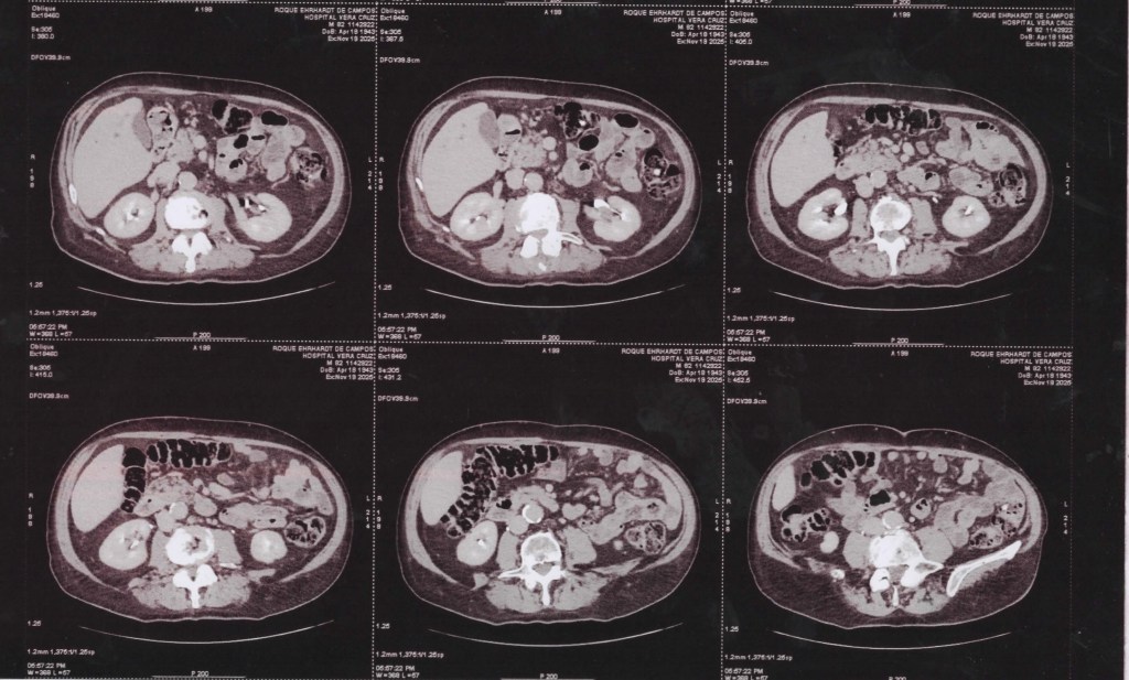 (TC) de Abdômen com cortes axiais, em janela de tecidos moles, com contraste 19 11 2025