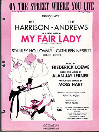 Quando a peça foi adaptada para o cinema pela Warner Bros. em 1964, Audrey Hepburn interpretou o papel principal antes interpretado por Julie Andrews. Quando a peça foi adaptada para o cinema pela Warner Bros. em 1964, Audrey Hepburn interpretou o papel principal antes interpretado por Julie Andrews. A principal música deste musical é “On the Street Where You Live”. Vic Damone gravou sua versão de “On the Street Where You Live” por volta da época da estreia da peça, em 1956. A canção alcançou o 4º lugar na parada da Billboard.