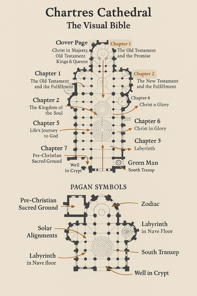 💡 In short: Chartres Cathedral is not a “pure” Christian creation; it is a palimpsest — a Christian manuscript written over a much older pagan parchment. The stone and glass tell two intertwined stories: one Biblical, one far older, both pointing to humanity’s attempt to connect heaven and earth.