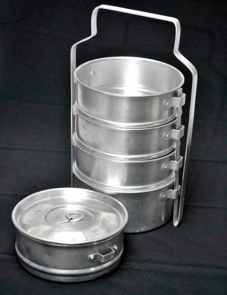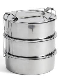 A obra de arte abstrata “ready made” que me chamou a atenção foi, se bem me lembro, um conjunto de lancheiras arredondadas empilhadas, que se pareciam com isto (tentei localizar a que vi, mas não consegui encontrá-la):